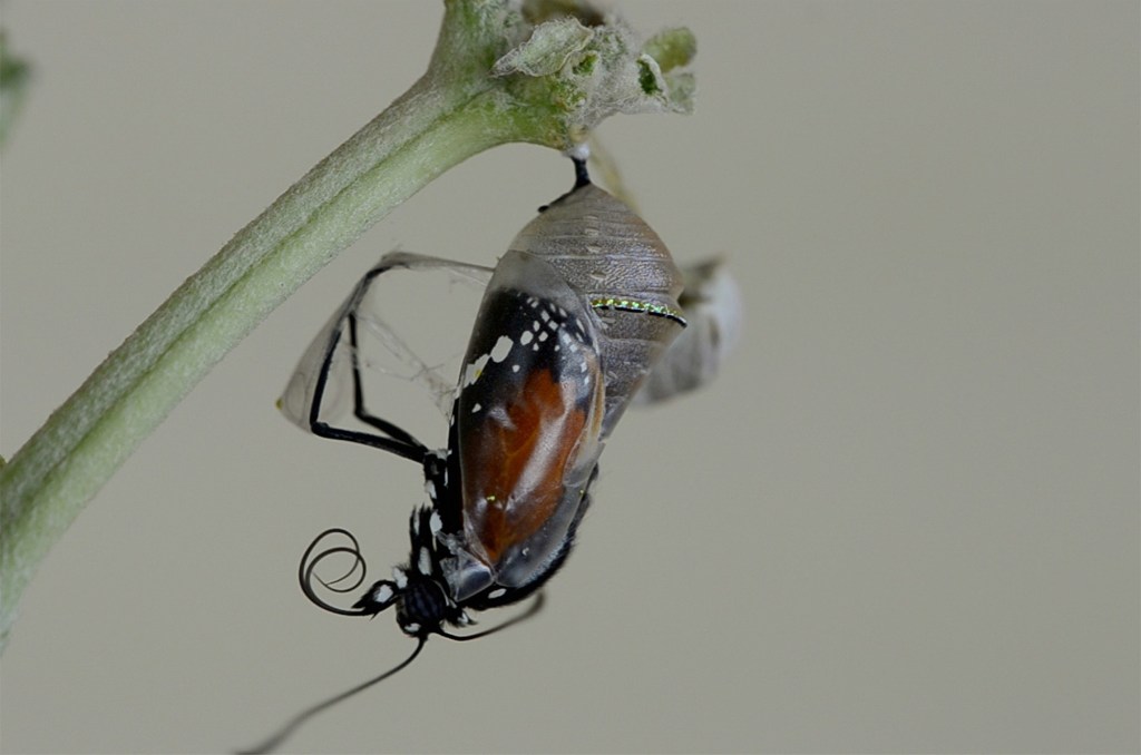 Little did I know back then that a caterpillar goes through stages—what we now know as metamorphosis. I won’t go into all the stages, but I want to focus on three: the larva stage, the chrysalis stage, and the adult stage.